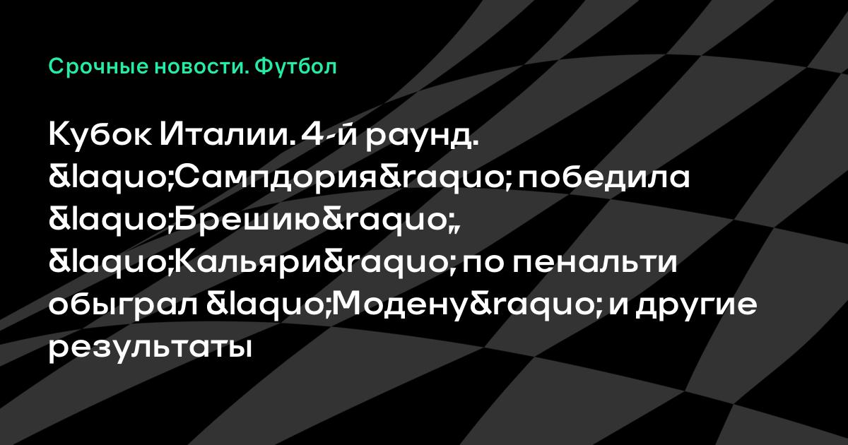 Кубок Италии. 4-й раунд. «Сампдория» победила «Брешию», «Кальяри» по пенальти обыграл «Модену» и другие результаты