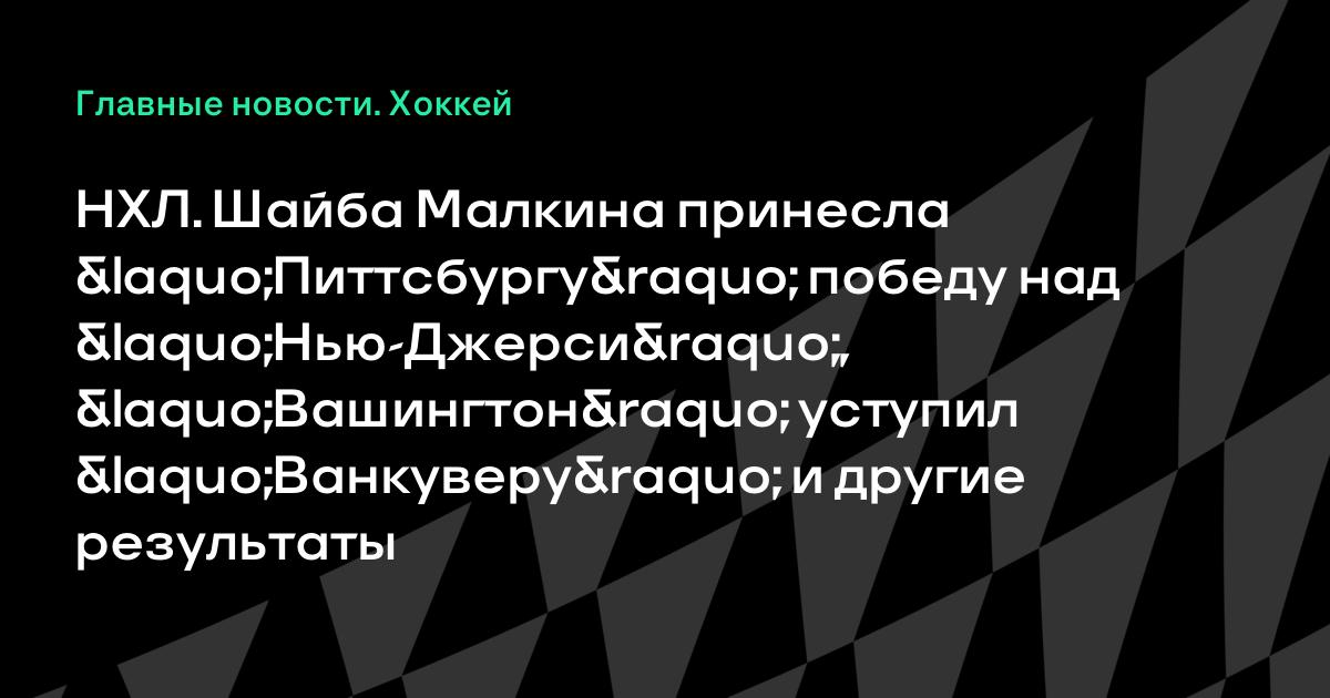 НХЛ. Шайба Малкина принесла «Питтсбургу» победу над «Нью-Джерси», «Вашингтон» уступил «Ванкуверу» и другие результаты