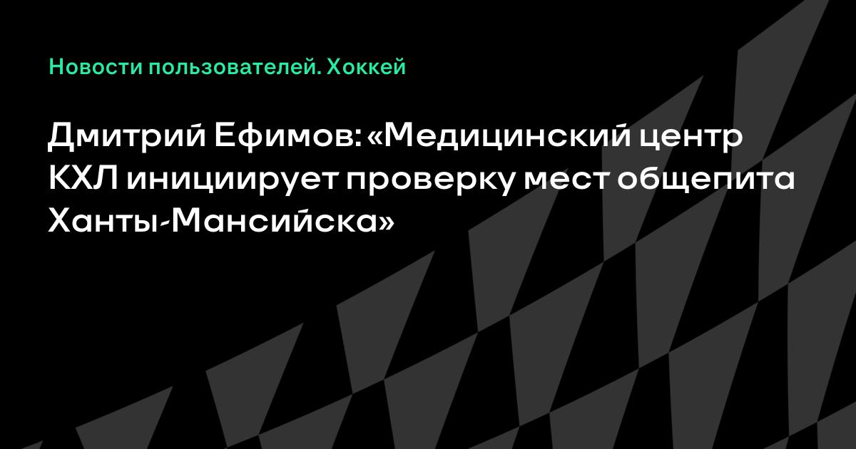 Дмитрий Ефимов: «Медицинский центр КХЛ инициирует проверку мест общепита Ханты-Мансийска»