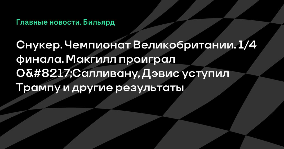 Снукер. Чемпионат Великобритании. 1/4 финала. Макгилл проиграл О’Салливану, Дэвис уступил Трампу и другие результаты