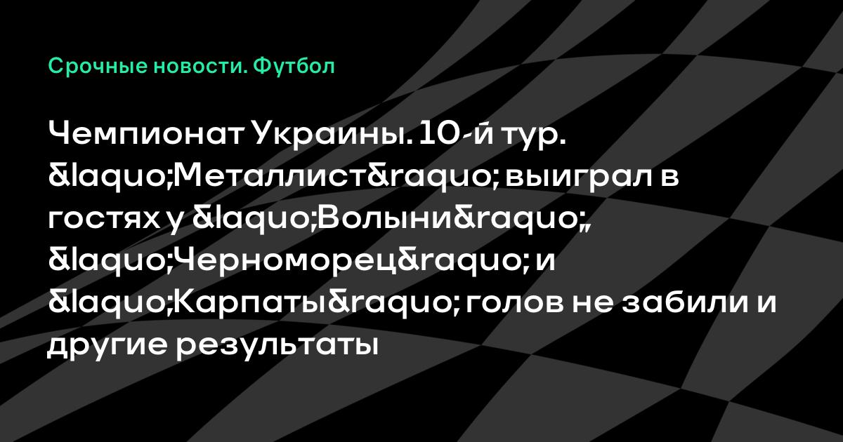 Чемпионат Украины. 10-й тур. «Металлист» выиграл в гостях у «Волыни», «Черноморец» и «Карпаты» голов не забили и другие результаты