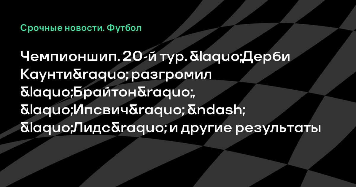 Чемпионшип. 20-й тур. «Дерби Каунти» разгромил «Брайтон», «Ипсвич» – «Лидс» и другие результаты