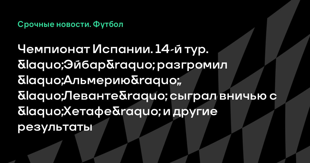 Чемпионат Испании. 14-й тур. «Эйбар» разгромил «Альмерию», «Леванте» сыграл вничью с «Хетафе» и другие результаты