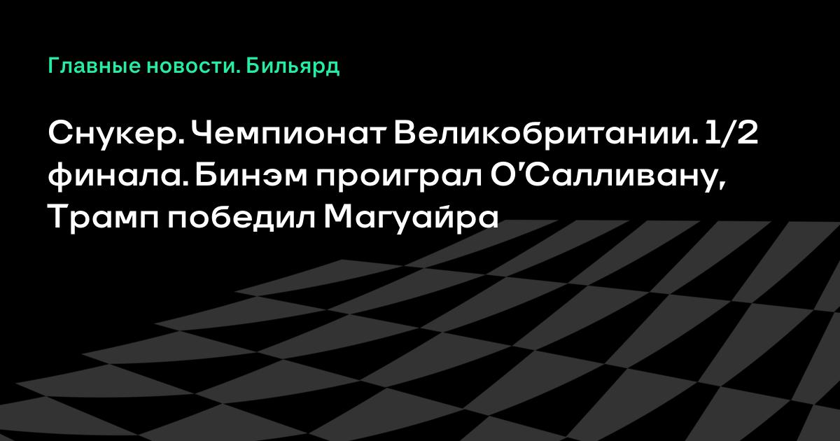 Снукер. Чемпионат Великобритании. 1/2 финала. Бинэм проиграл О’Салливану, Трамп победил Магуайра