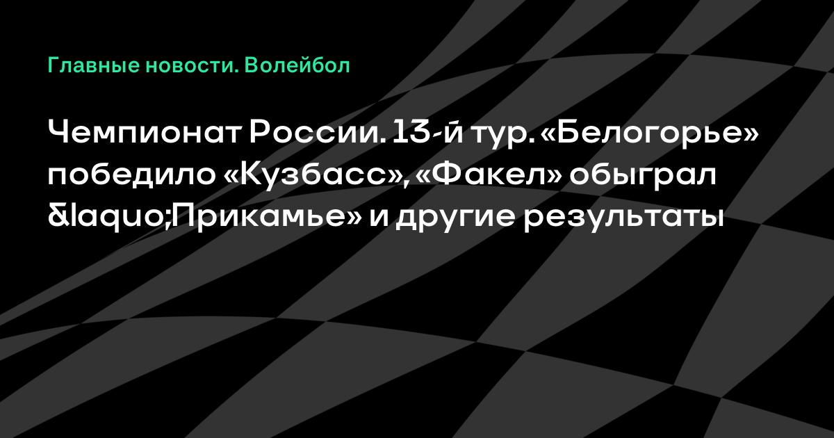 Сегодня прошли два матча 13-й тур мужского чемпионата России по волейболу. «Факел» победил «Прикамье» (3-0), «Белогорье» обыграло «Кузбасс» (3-1).