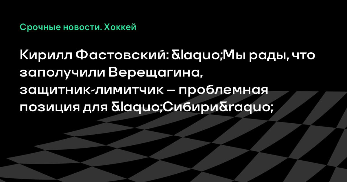 Генеральный менеджер «Сибири» Кирилл Фастовский поделился соображениями в свете появления в команде защитника Ивана Верещагина.