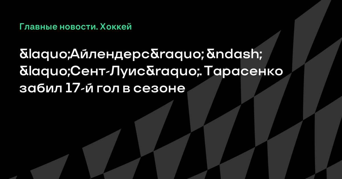 Нападающий «Сент-Луиса» Владимир Тарасенко в матче регулярного чемпионата НХЛ с «Айлендерс» (6:4) отметился заброшенной шайбой, которая стала для него 17-й в сезоне.