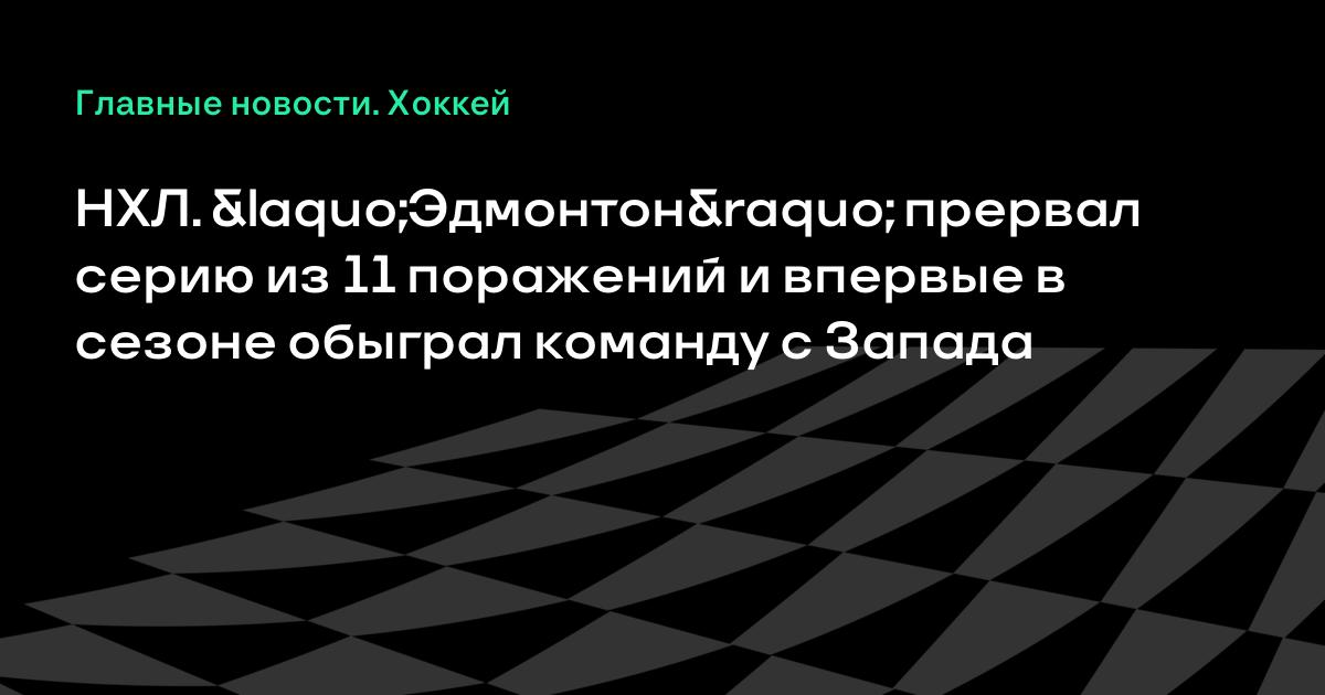 НХЛ. «Эдмонтон» прервал серию из 11 поражений и впервые в сезоне обыграл команду с Запада