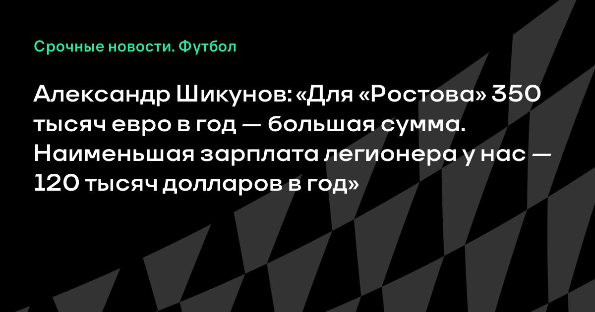 Александр Шикунов: «Для «Ростова» 350 тысяч евро в год — большая сумма. Наименьшая зарплата легионера у нас — 120 тысяч долларов в год»