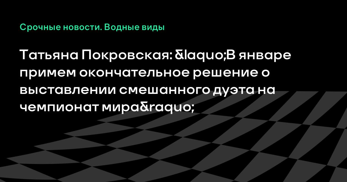 Про чемпионат мира на данный момент точно ничего не могу сказать. Это большая ответственность, а для подготовки остается мало времени, всего полгода. Надо все хорошенько проанализировать. Думаю, в январе примем окончательное решение», – рассказала Покровская в интервью агентству «Весь спорт».