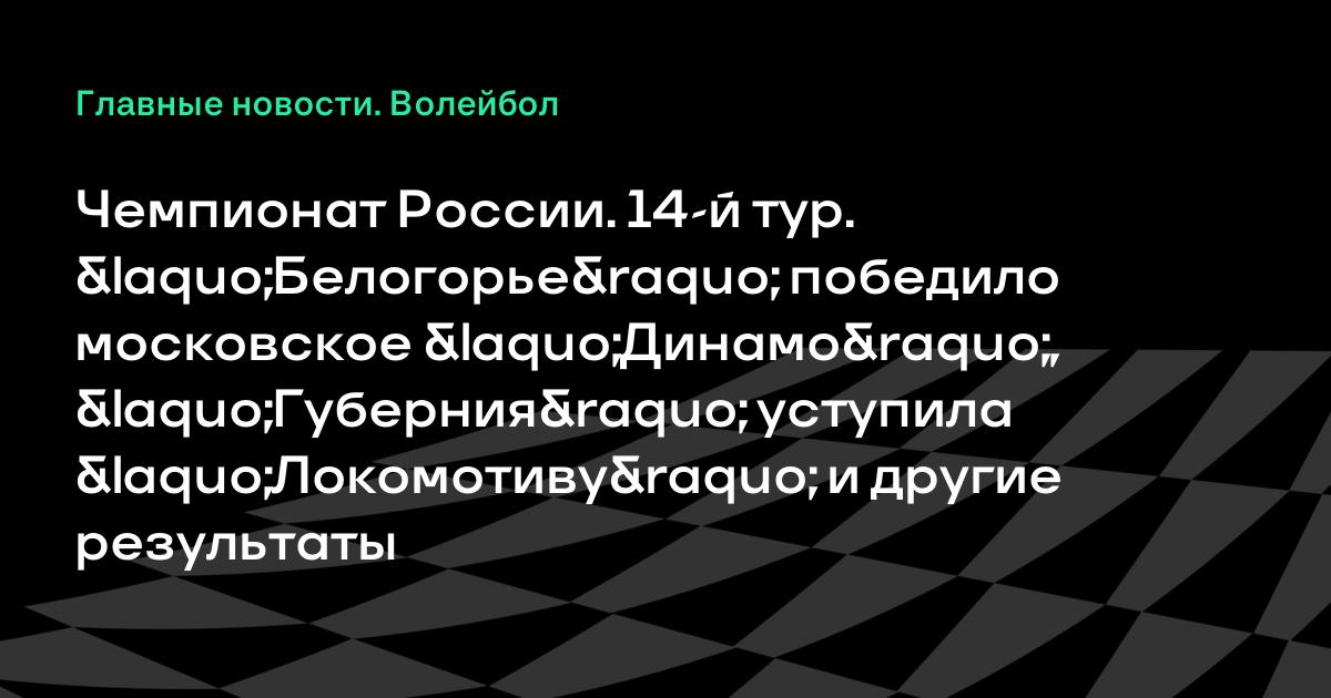 Чемпионат России. 14-й тур. «Белогорье» победило московское «Динамо», «Губерния» уступила «Локомотиву» и другие результаты