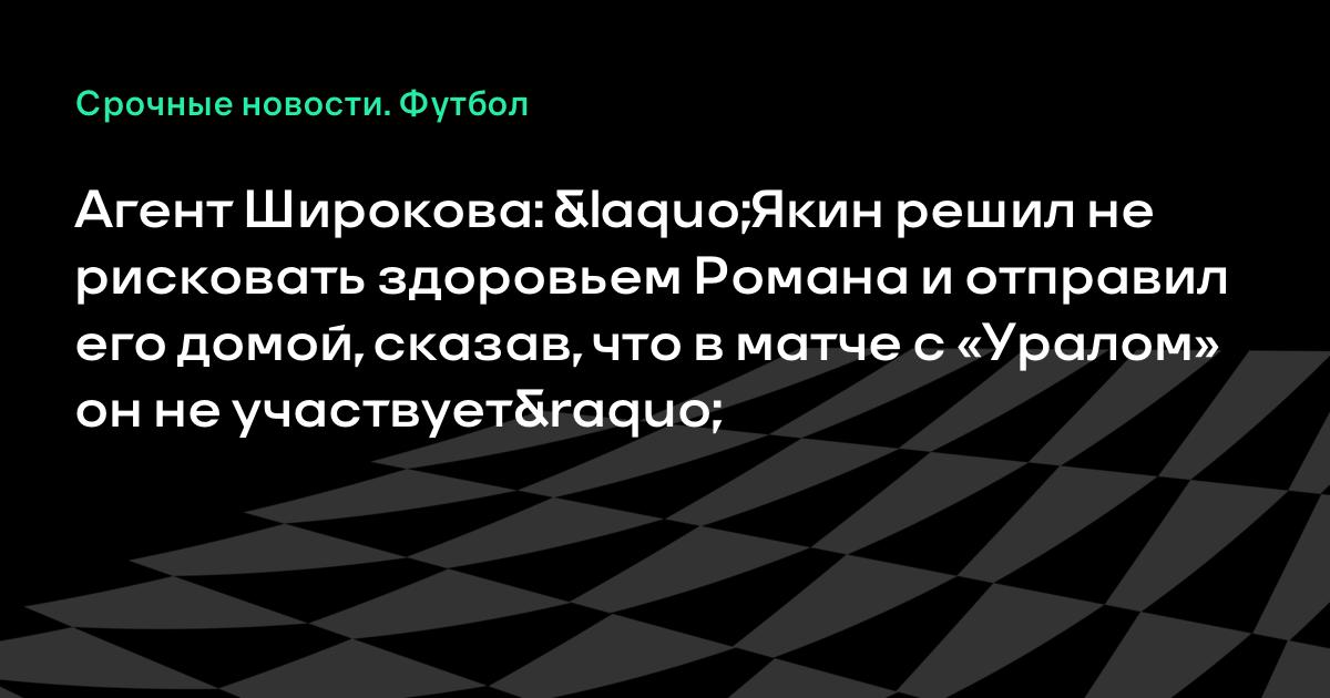 Агент Широкова: «Якин решил не рисковать здоровьем Романа и отправил его домой, сказав, что в матче с «Уралом» он не участвует»
