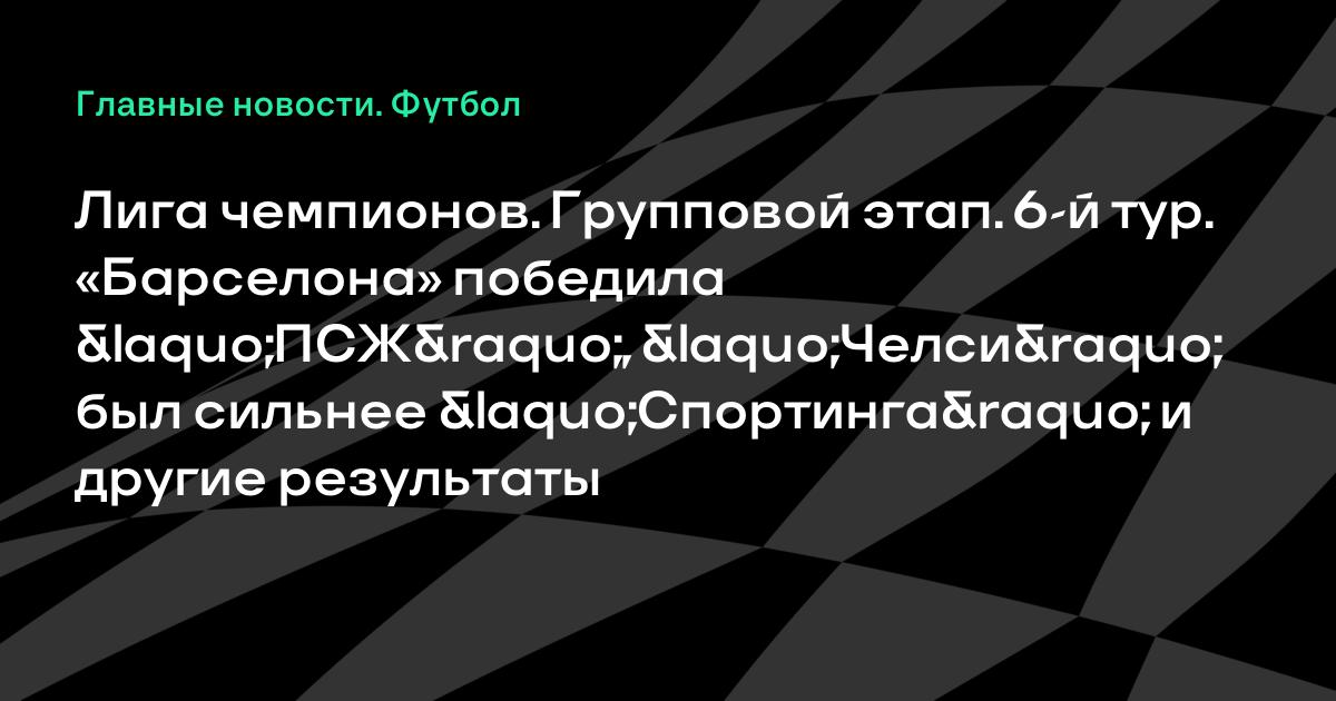 Лига чемпионов. Групповой этап. 6-й тур. «Барселона» победила «ПСЖ», «Челси» был сильнее «Спортинга» и другие результаты