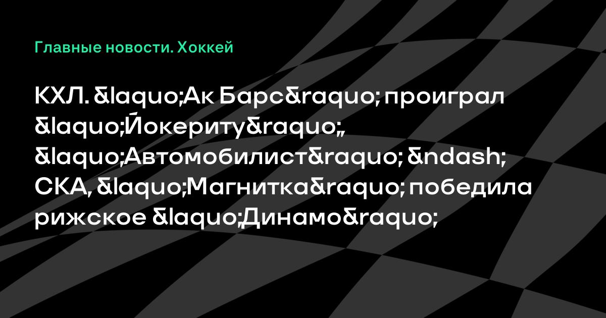 КХЛ. «Ак Барс» проиграл «Йокериту», «Автомобилист» – СКА, «Магнитка» победила рижское «Динамо»