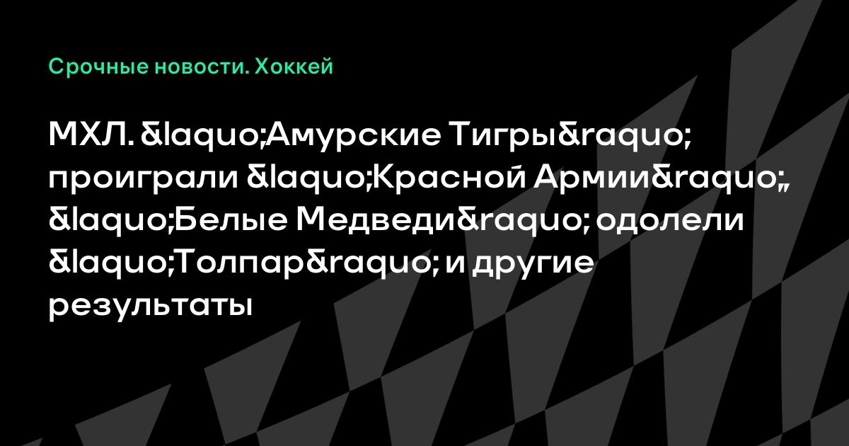 МХЛ. «Амурские Тигры» проиграли «Красной Армии», «Белые Медведи» одолели «Толпар» и другие результаты