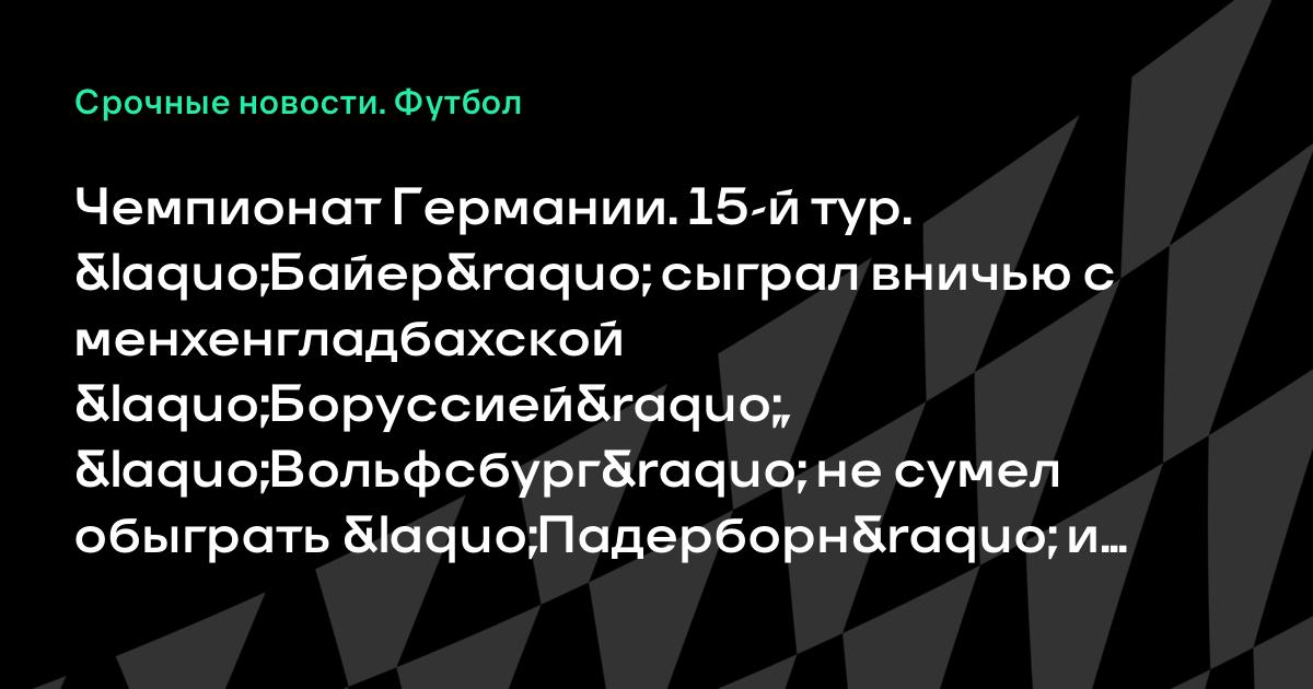Чемпионат Германии. 15-й тур. «Байер» сыграл вничью с менхенгладбахской «Боруссией», «Вольфсбург» не сумел обыграть «Падерборн» и другие результаты