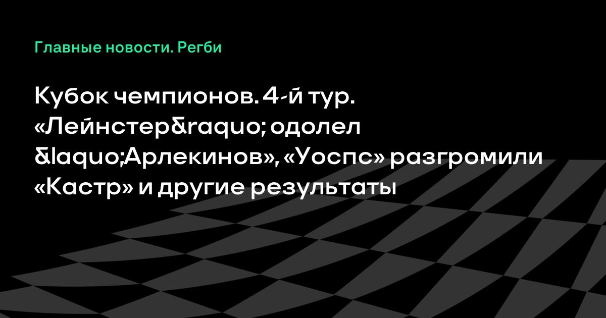 Кубок чемпионов. 4-й тур. «Лейнстер» одолел «Арлекинов», «Уоспс» разгромили «Кастр» и другие результаты