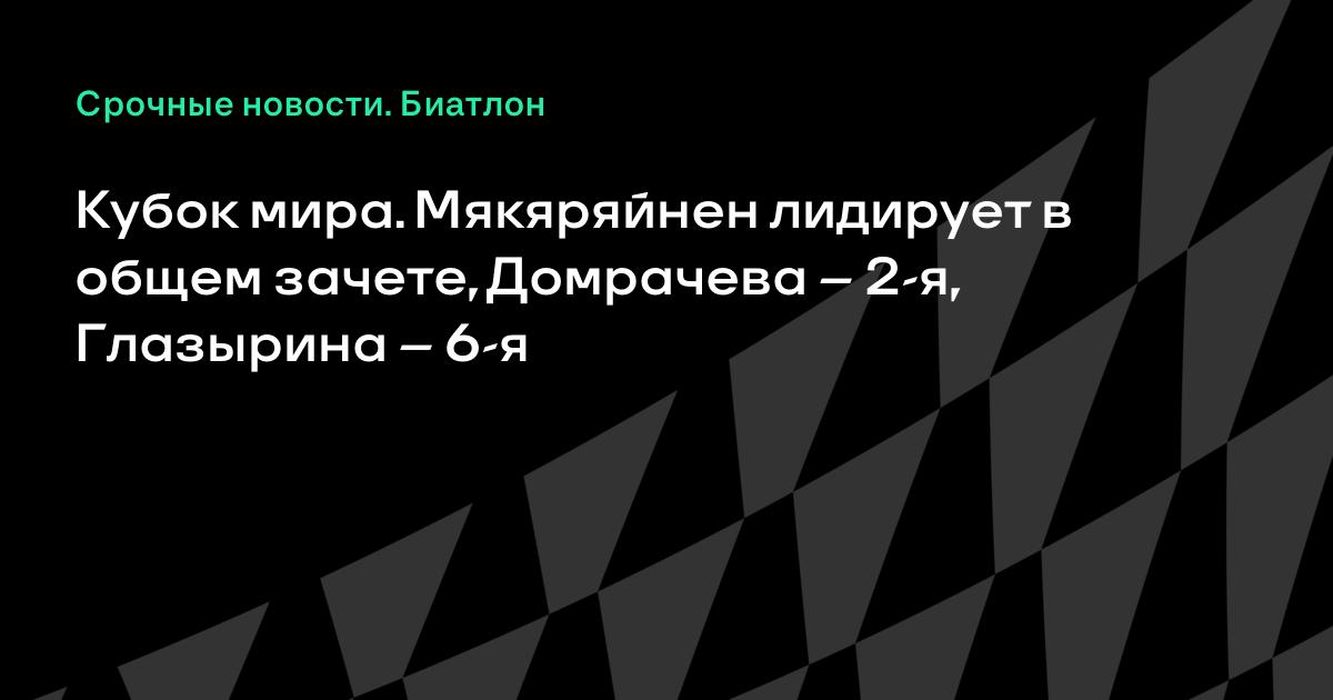 Кубок мира. Мякяряйнен лидирует в общем зачете, Домрачева – 2-я, Глазырина – 6-я
