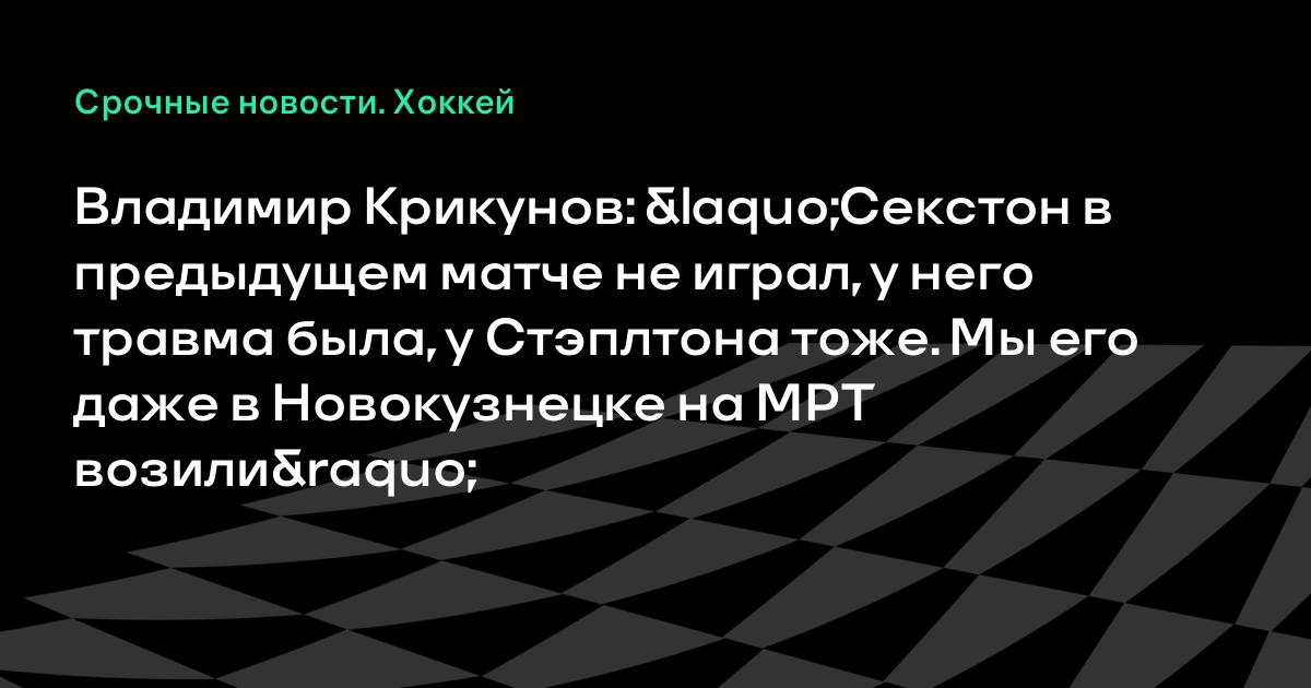 Владимир Крикунов: «Секстон в предыдущем матче не играл, у него травма была, у Стэплтона тоже. Мы его даже в Новокузнецке на МРТ возили»