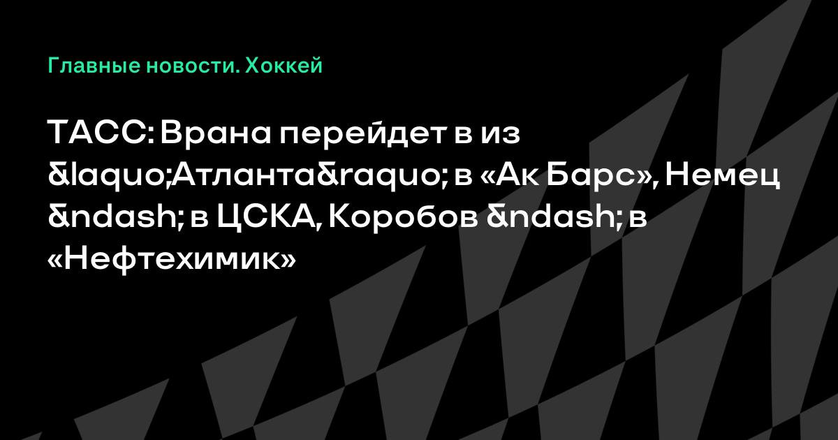 ТАСС: Врана перейдет в из «Атланта» в «Ак Барс», Немец – в ЦСКА, Коробов – в «Нефтехимик»