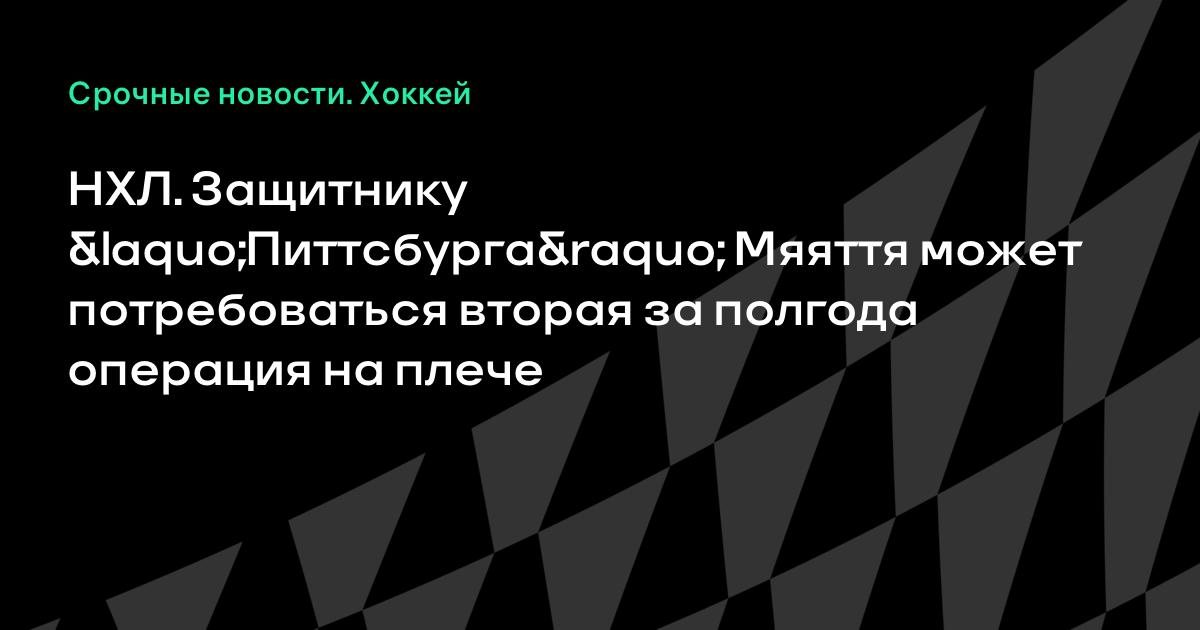 Защитнику «Питтсбурга» Олли Мяяття, возможно, предстоит операция на плече, сообщает Роб Росси из Pittsburgh Tribune-Review.Мяяття повредил то же плечо, которое было прооперировано в мае.