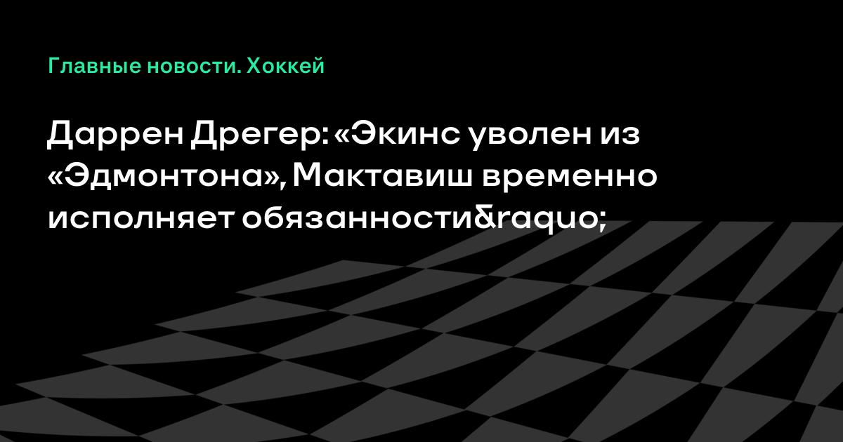 Даррен Дрегер: «Экинс уволен из «Эдмонтона», Мактавиш временно исполняет обязанности»