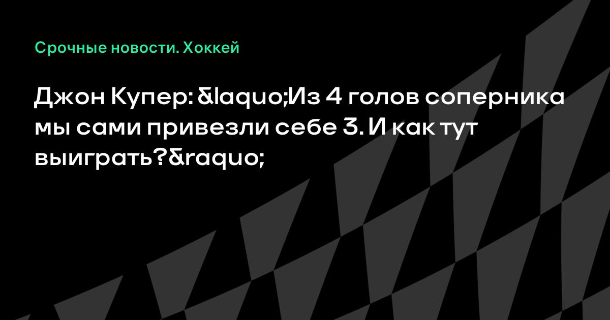 Главный тренер «Тампы-Бэй» Джон Купер прокомментировал поражение своей команды от «Питтсбурга» (2:4).