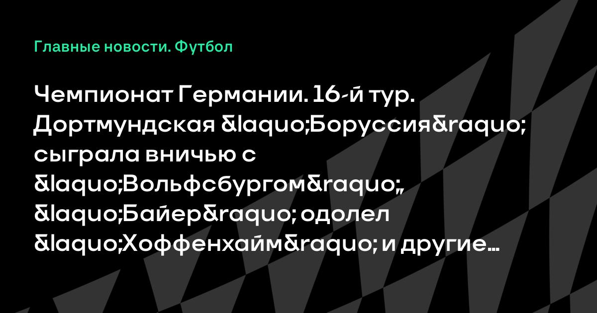 Чемпионат Германии. 16-й тур. Дортмундская «Боруссия» сыграла вничью с «Вольфсбургом», «Байер» одолел «Хоффенхайм» и другие результаты