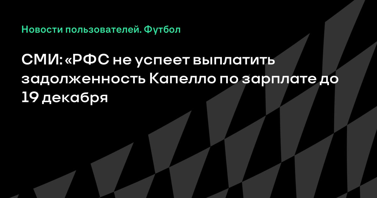 Как информирует издание, по состоянию на 21 ноября — дату завершения проверки — РФС задолжал специалистам более 181 миллиона рублей, а сам Капелло не получает зарплату уже пять месяцев.