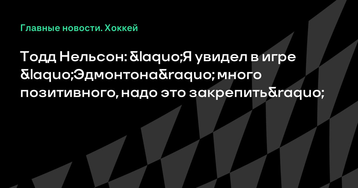 Исполняющий обязанности главного тренера «Эдмонтона» Тодд Нельсон прокомментировал поражение от «Аризоны» (1:2 ОТ).«Сегодня я видел много позитивного, нужно это закрепить и двигаться дальше.