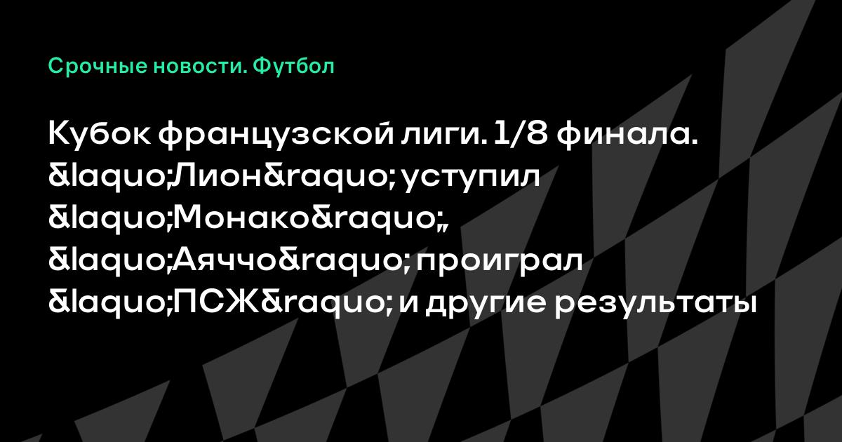 Кубок французской лиги. 1/8 финала. «Лион» уступил «Монако», «Аяччо» проиграл «ПСЖ» и другие результаты
