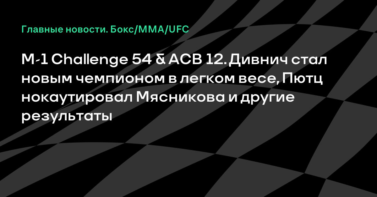 М-1 Challenge 54 & ACB 12. Дивнич стал новым чемпионом в легком весе, Пютц нокаутировал Мясникова и другие результаты