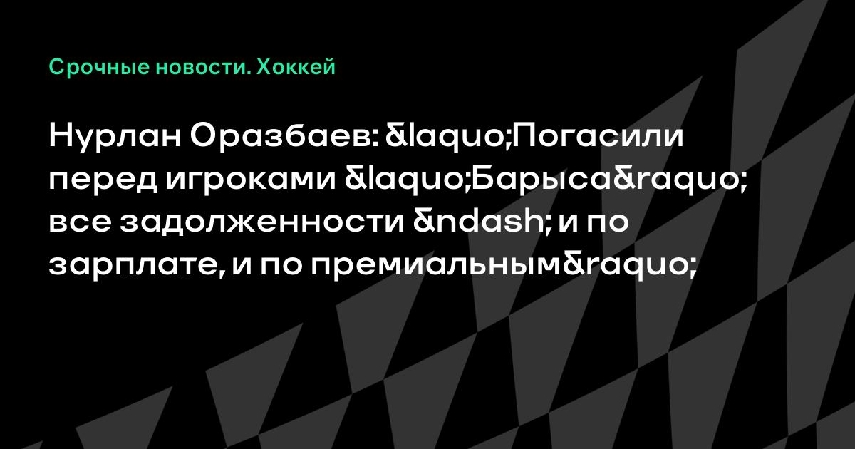 Нурлан Оразбаев: «Погасили перед игроками «Барыса» все задолженности – и по зарплате, и по премиальным»