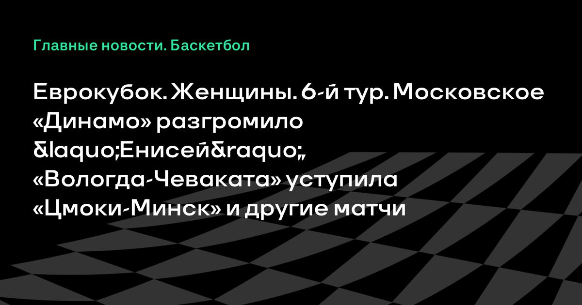 Еврокубок. Женщины. 6-й тур. Московское «Динамо» разгромило «Енисей», «Вологда-Чеваката» уступила «Цмоки-Минск» и другие матчи