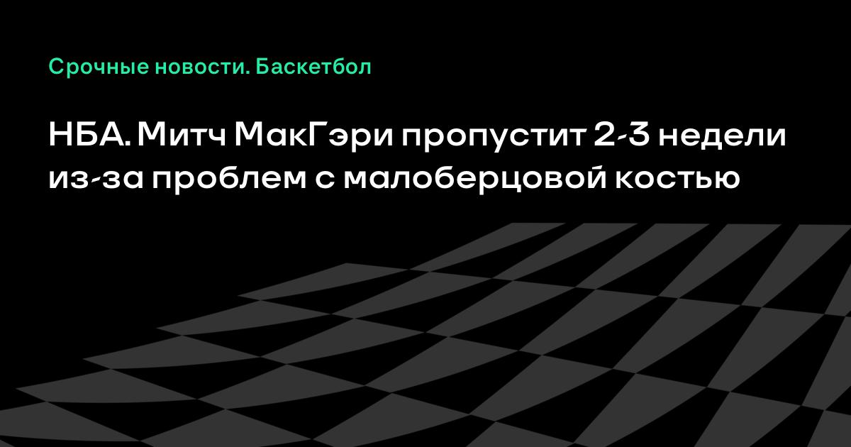 Новичок «Оклахомы» Митч МакГэри пропустит 2-3 недели из-за периостита малоберцовой кости левой ноги, сообщает The Oklahoman.