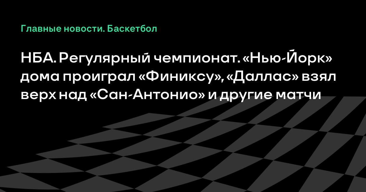 НБА. Регулярный чемпионат. «Нью-Йорк» дома проиграл «Финиксу», «Даллас» взял верх над «Сан-Антонио» и другие матчи