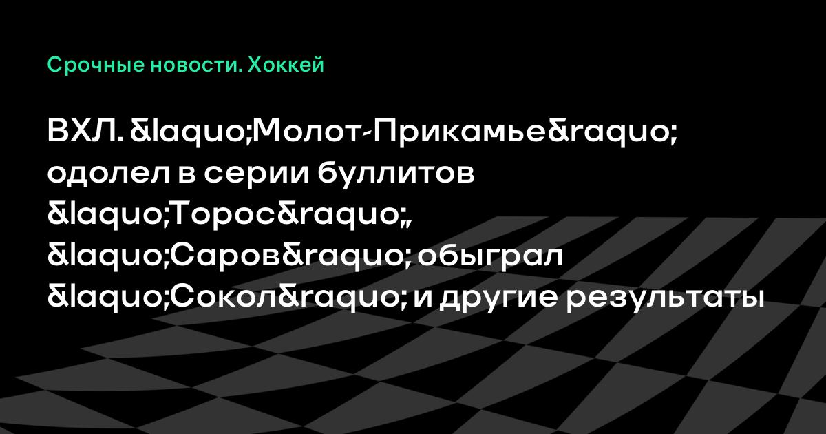 ВХЛ. «Молот-Прикамье» одолел в серии буллитов «Торос», «Саров» обыграл «Сокол» и другие результаты