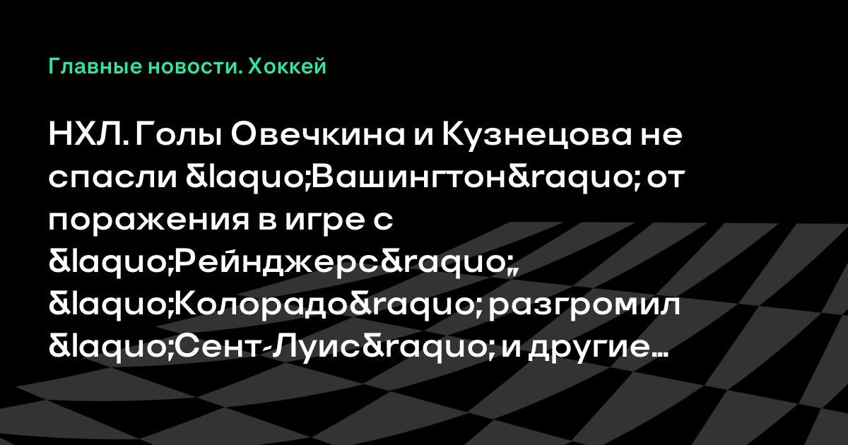 НХЛ. Голы Овечкина и Кузнецова не спасли «Вашингтон» от поражения в игре с «Рейнджерс», «Колорадо» разгромил «Сент-Луис» и другие результаты
