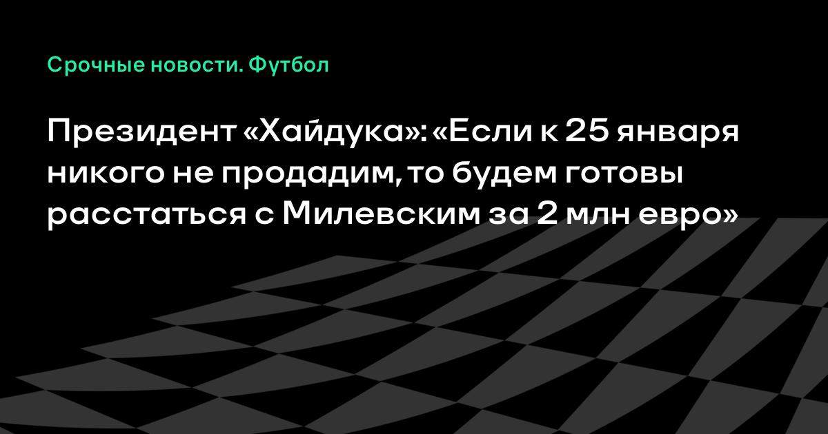 Если к 25 января не удастся продать ни одного из игроков, то будем принимать предложения по Милевскому. 2 миллиона евро – за такую цену мы готовы его продать», – сказал Брбич.