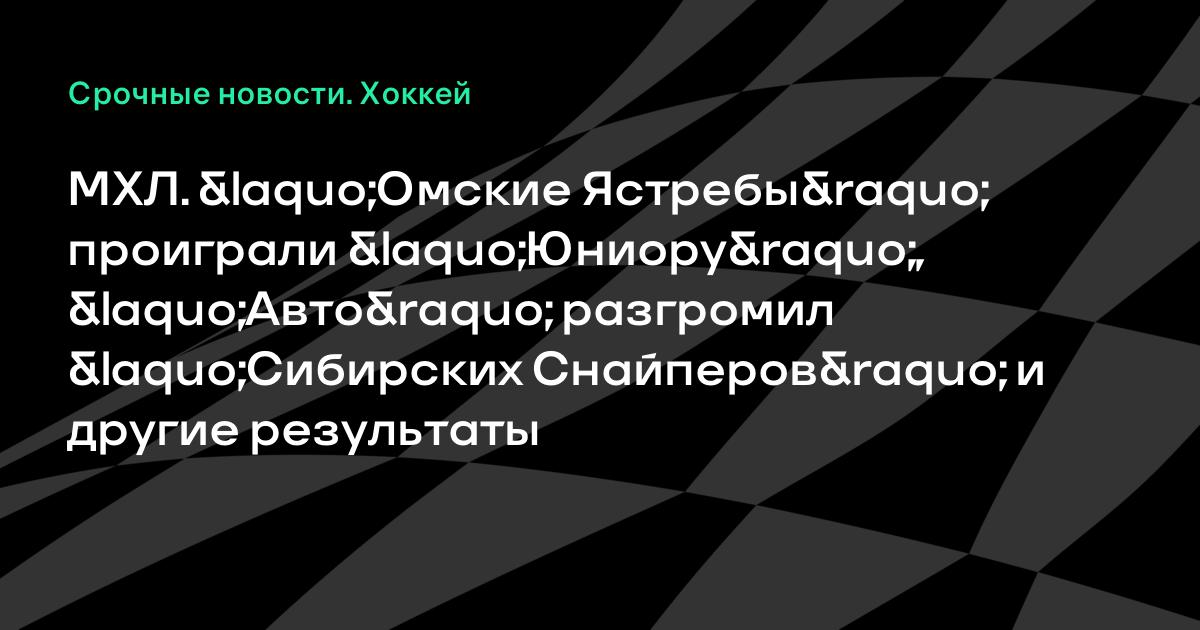МХЛ. «Омские Ястребы» проиграли «Юниору», «Авто» разгромил «Сибирских Снайперов» и другие результаты