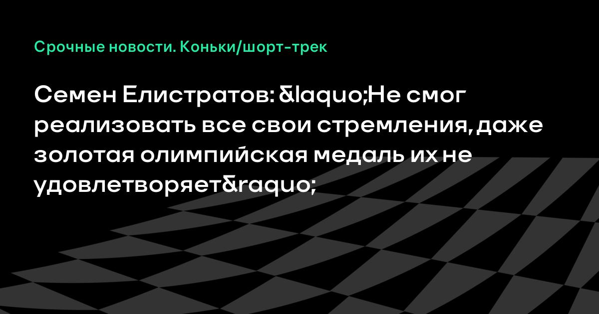 Семен Елистратов: «Не смог реализовать все свои стремления, даже золотая олимпийская медаль их не удовлетворяет»