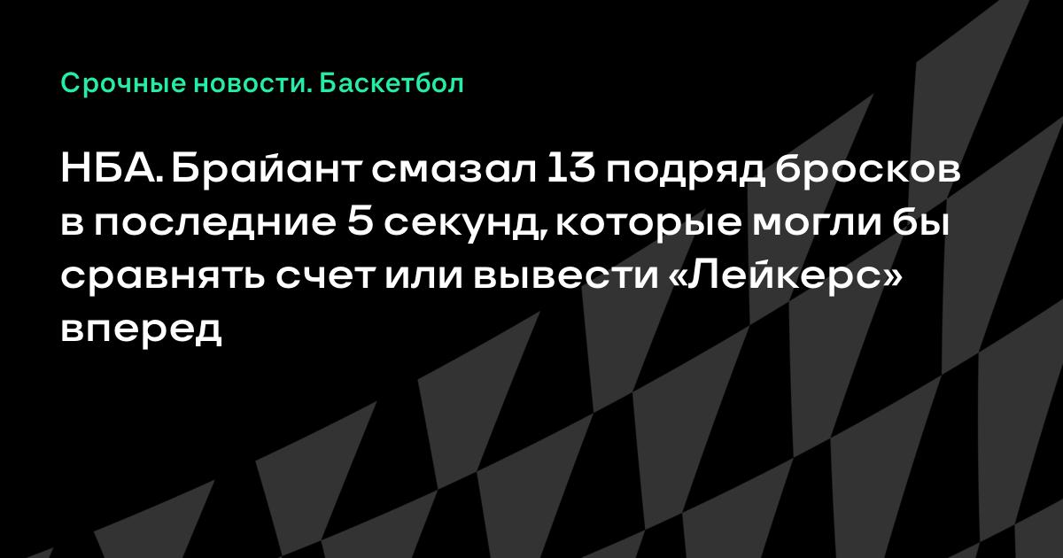 НБА. Брайант смазал 13 подряд бросков в последние 5 секунд, которые могли бы сравнять счет или вывести «Лейкерс» вперед