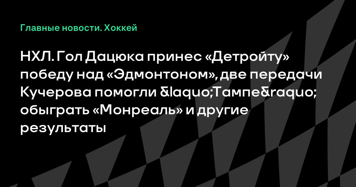 НХЛ. Гол Дацюка принес «Детройту» победу над «Эдмонтоном», две передачи Кучерова помогли «Тампе» обыграть «Монреаль» и другие результаты