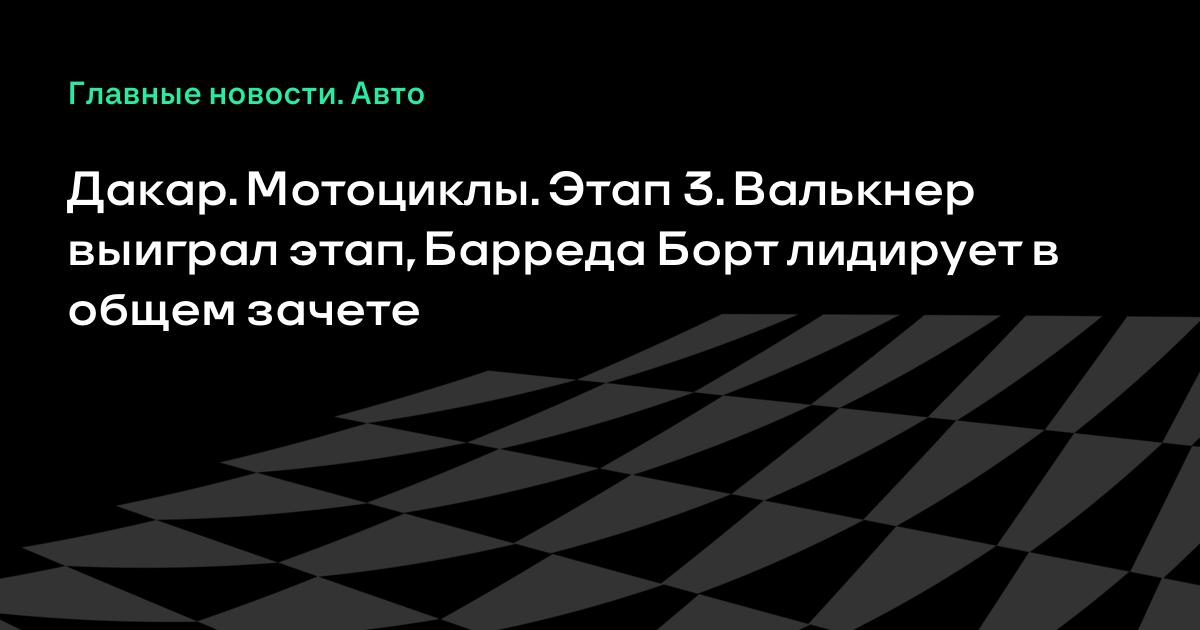 Дакар. Мотоциклы. Этап 3. Валькнер выиграл этап, Барреда Борт лидирует в общем зачете