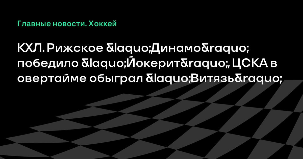 КХЛ. Рижское «Динамо» победило «Йокерит», ЦСКА в овертайме обыграл «Витязь»