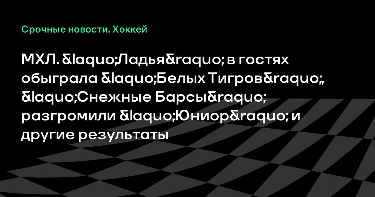 МХЛ. «Ладья» в гостях обыграла «Белых Тигров», «Снежные Барсы» разгромили «Юниор» и другие результаты