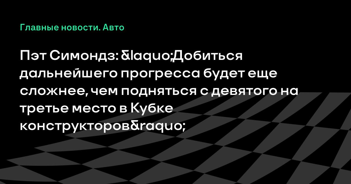 Пэт Симондз: «Добиться дальнейшего прогресса будет еще сложнее, чем подняться с девятого на третье место в Кубке конструкторов»