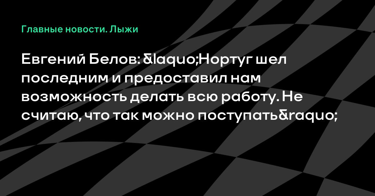 Нортуг шел последним и предоставил нам возможность делать всю работу. Не считаю, что так можно поступать. Поэтому я среагировал после финиша и рассержен сейчас», – приводит слова Белова Dagbladet.