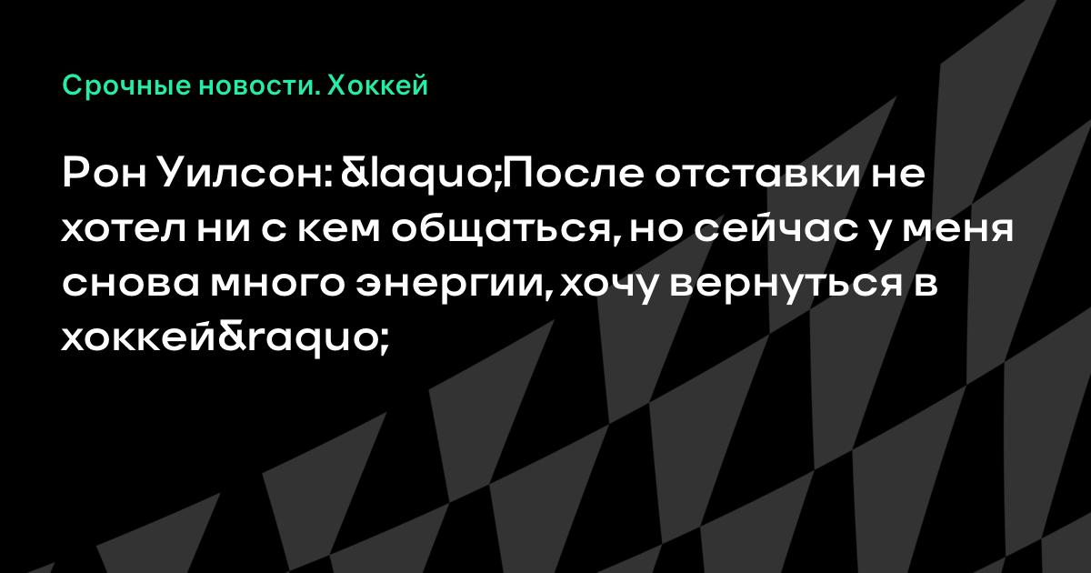 Рон Уилсон: «После отставки не хотел ни с кем общаться, но сейчас у меня снова много энергии, хочу вернуться в хоккей»