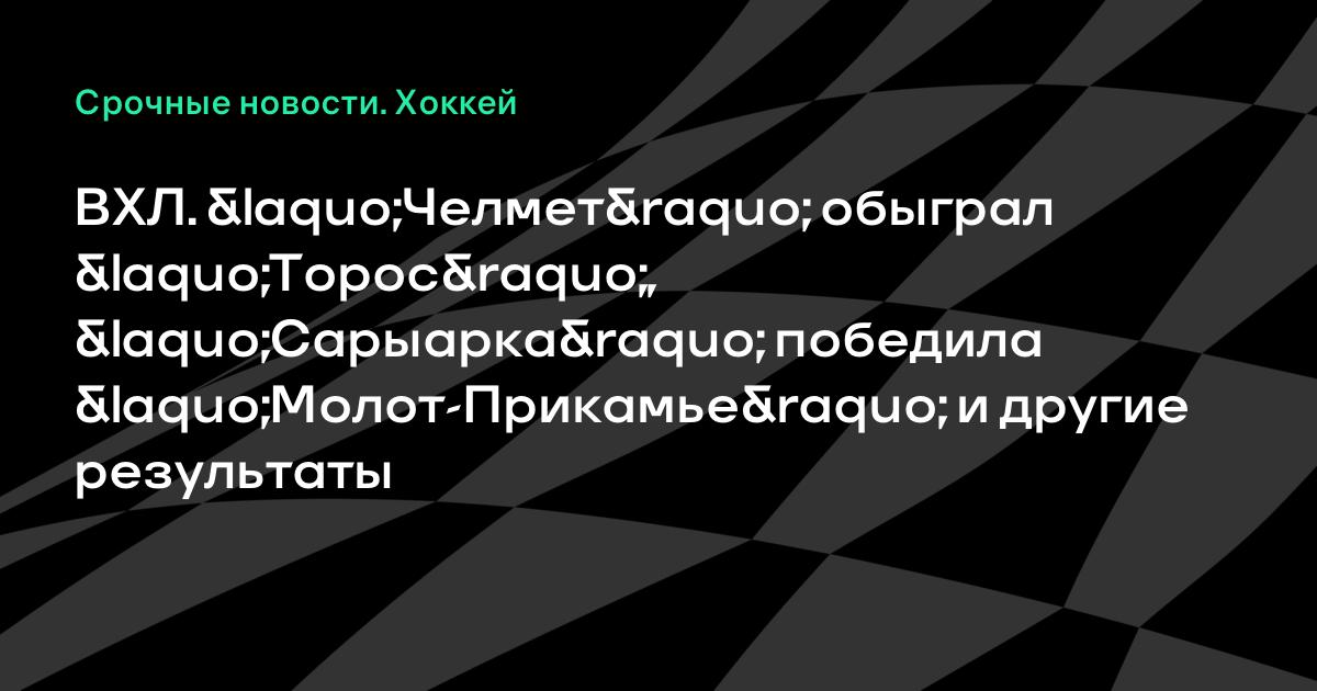 ВХЛ. «Челмет» обыграл «Торос», «Сарыарка» победила «Молот-Прикамье» и другие результаты